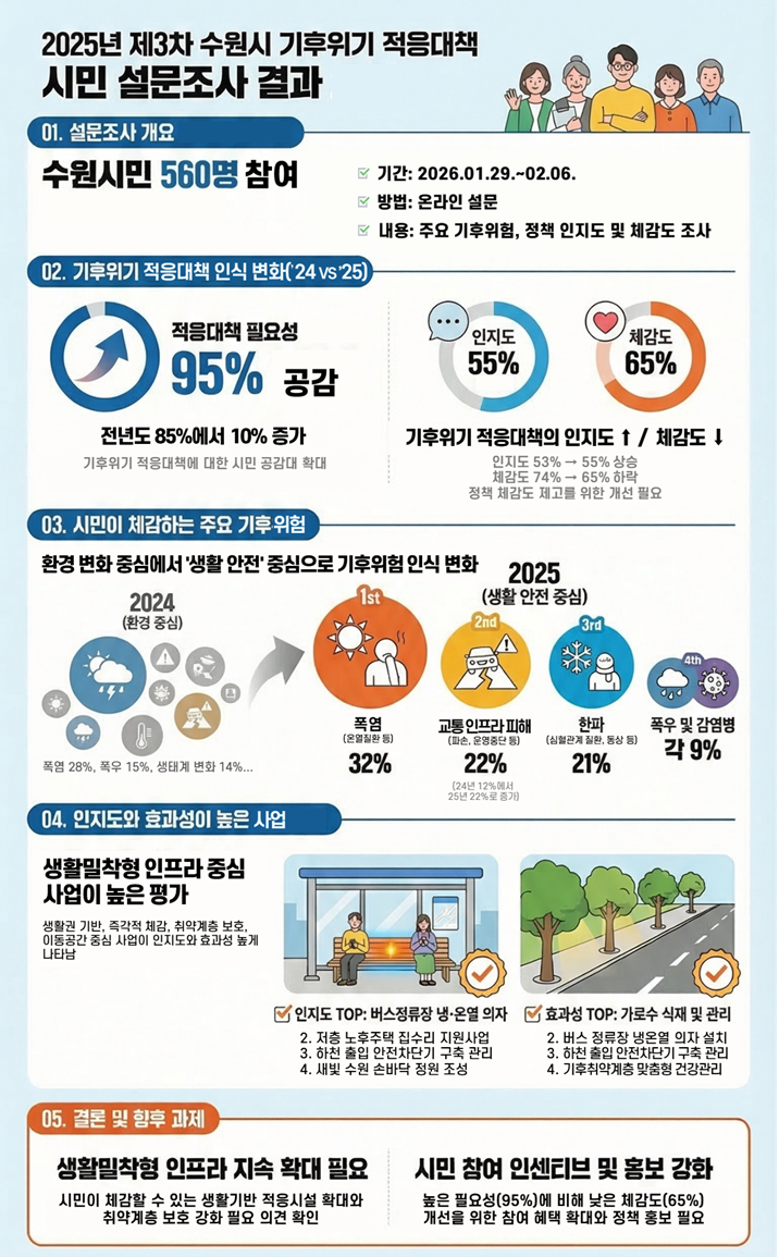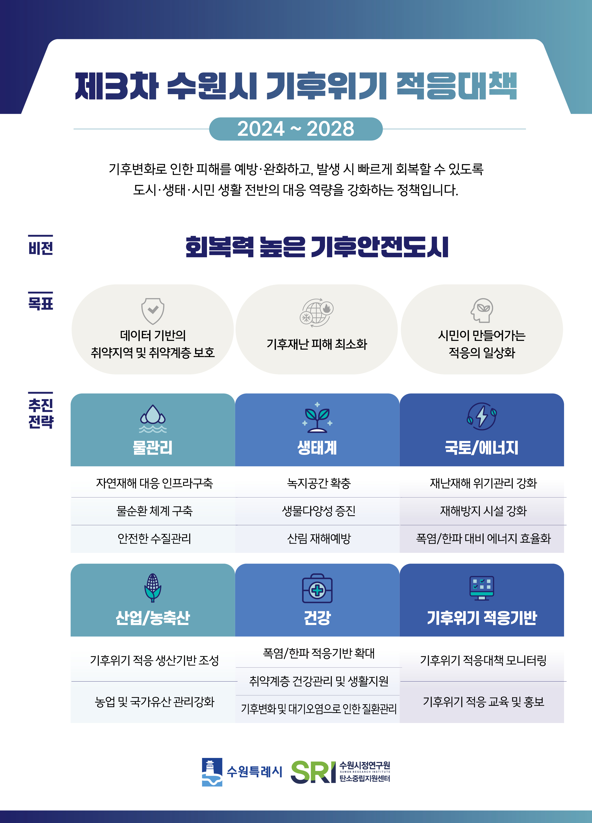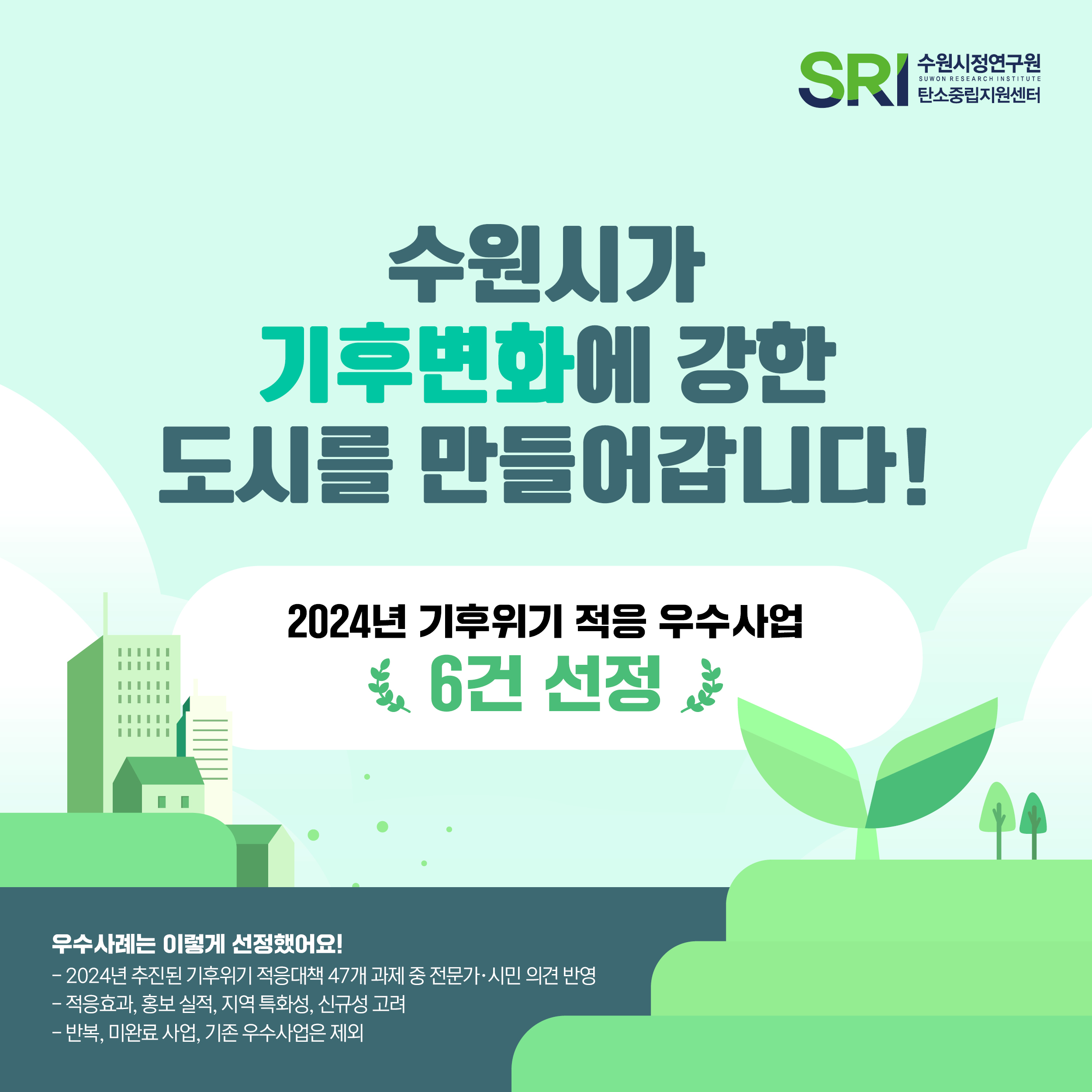 SRI Brief 학술지 「수원학연구」 수원이야기 탄소중립이야기 총 8건의 게시물이 있습니다. 게시물 검색 검색어 필수 제3차 수원시 기후위기 적응대책 시민 의견수렴을 위한 설문조사 결과 조회수46 탄소중립, 시민의 일상이 되다. 2025 지구로운 모임 활동성과 조회수38 수원시 공공부문 탄소중립 실천 가이드라인 조회수44 2025 수원시 기후위기 적응 우수사업 조회수36 2024 기후위기 적응 우수사업 조회수34 제 3차 수원시 기후위기 적응대책(2024~2028) 조회수33 수원시 탄소중립 녹색성장 기본계획 조회수82 수원시 기후변화와 탄소중립 조회수69 바로보기 수원시 기후변화와 탄소중립국문-확인용.pdf 다운로드 수원시 기후변화와 탄소중립국문-확인용.pdf