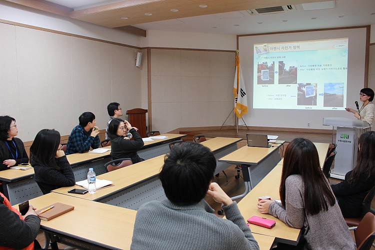 연구원동향 언론보도 보도자료 뉴스레터 2월 수원을 읽는다(내부강의) 페이지 정보 작성자 : 수원시정연구원 | 조회수 : 2,809 | 작성일 : 15-02-27 13:54 본문 일시 2015-02-26 ○ 발표자 : 김숙희 연구위원 ○ 주 제 : 공영자전거 해외벤치마킹 결과보고(네덜란드, 영국, 프랑스) 이전글 정기간행물 편집위원회 다음글 제4회 수원학 포럼 개최 목록