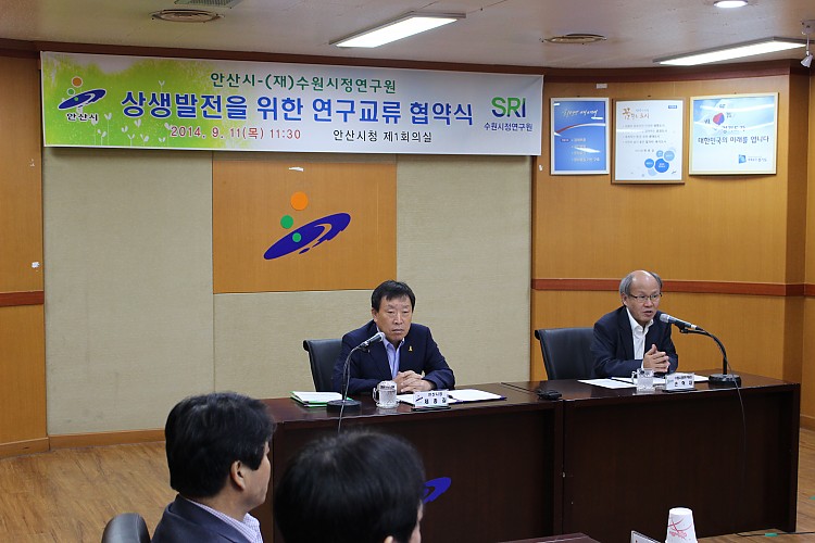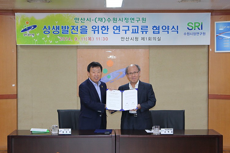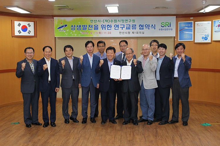 수원시정연구원과 안산시 연구교류 협약 체결이 진행되었습니다.
