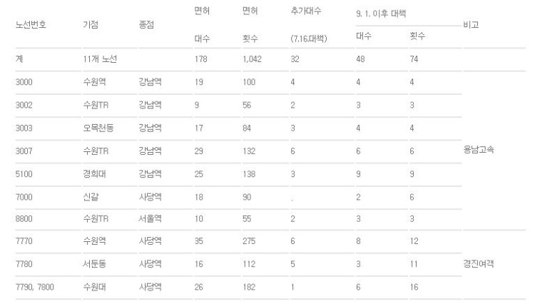 시 관계자는 “9월 이후에도 모니터를 계속하며 수원 시민들의 광역버스 이용불편을 최소화할 것”이라며 “단기적 대책은 물론 장기적 대안에 대해서도 상급 기관과 협의를 지속적으로 추진하고 있다.”고 말했다.
