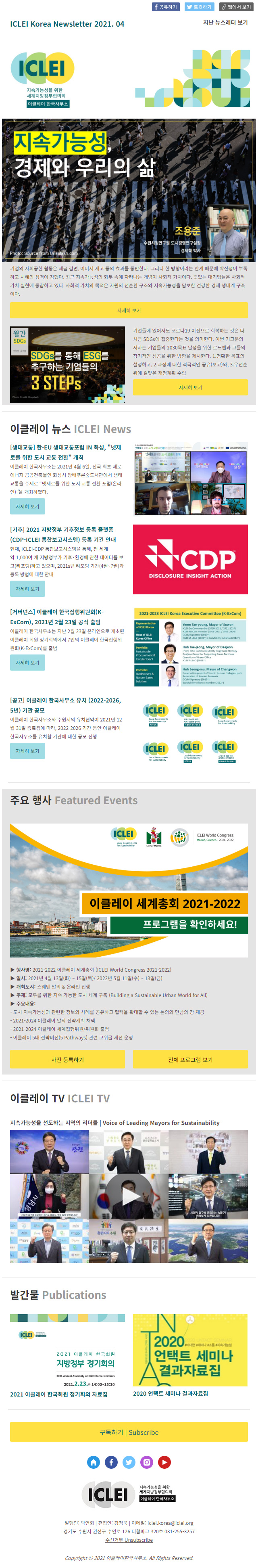 이클레이 한국사무소 뉴스레터 2021-4호 페이지 정보 작성자 : 수원시정연구원 | 조회수 : 371 | 작성일 : 21-04-12 23:04 본문 이전글이클레이 한국사무소 뉴스레터 2021-5호 다음글이클레이 한국사무소 뉴스레터 2021-3호 목록
