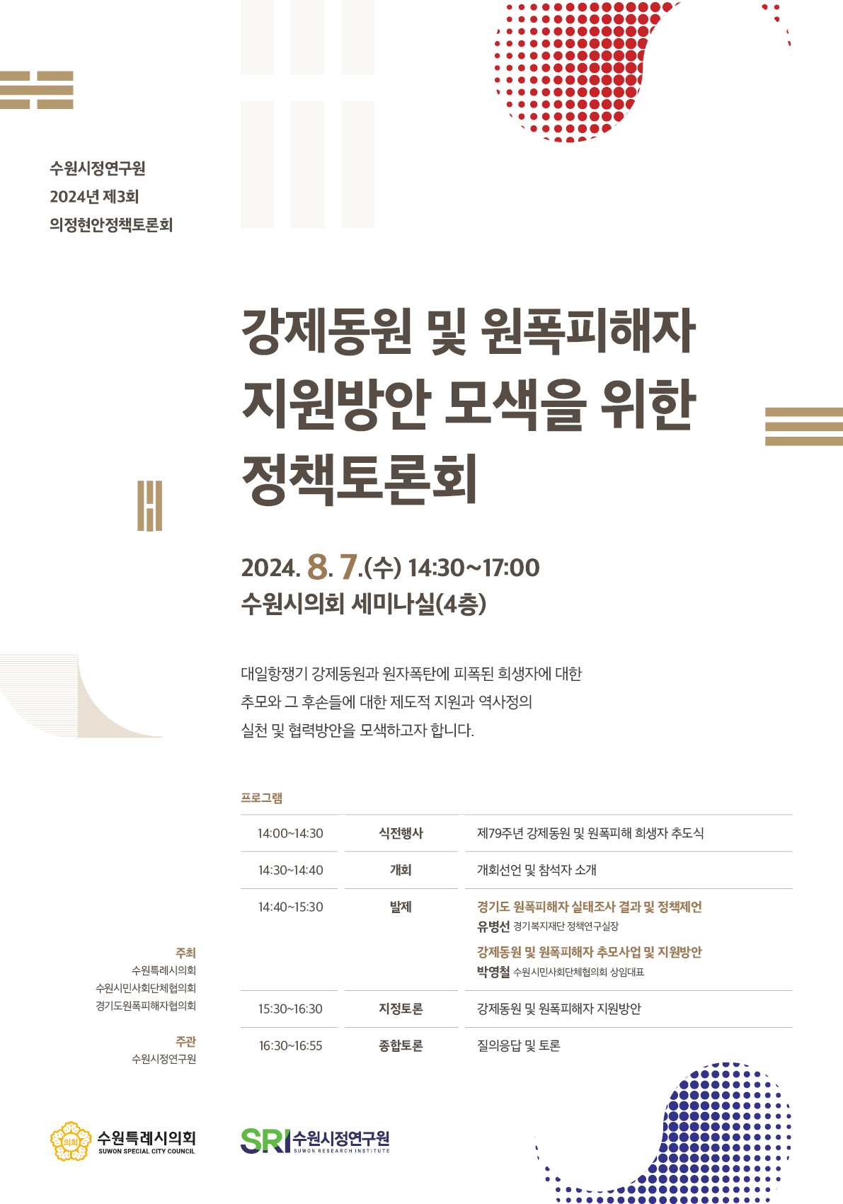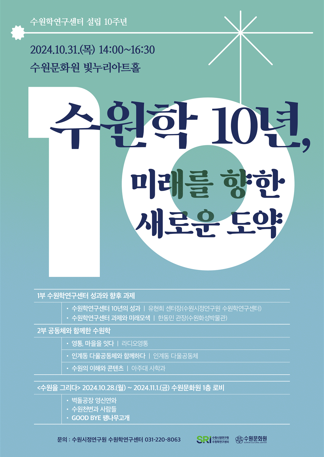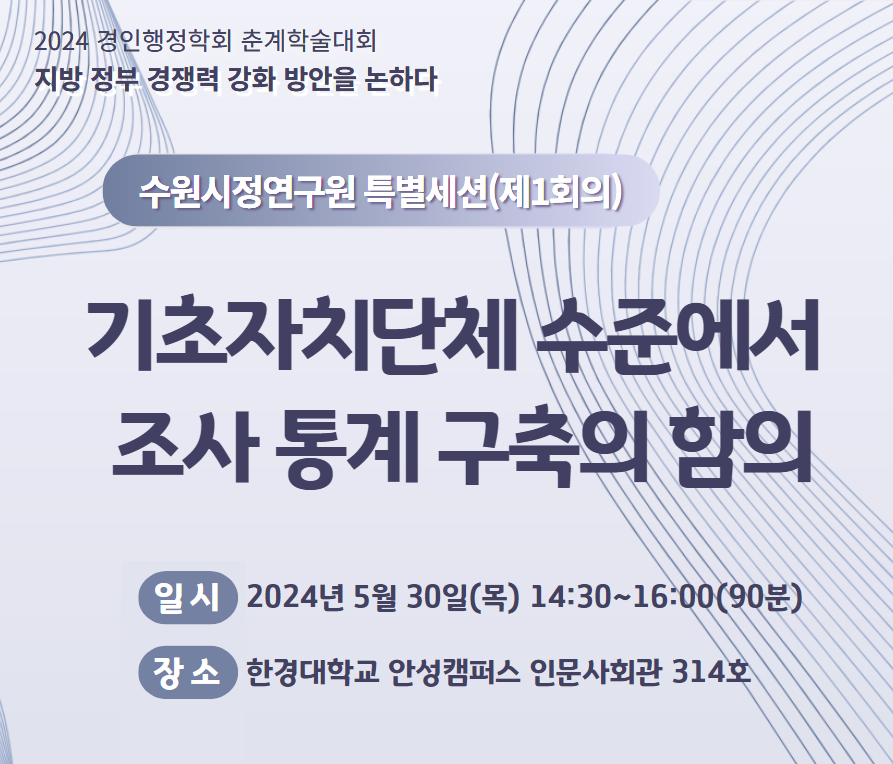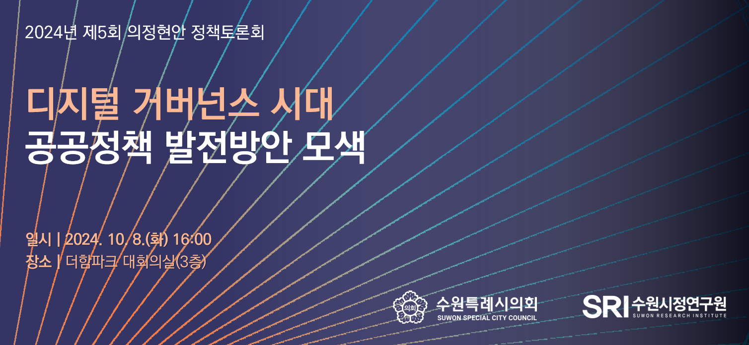 공지사항 채용 주요일정 총 105건의 게시물이 있습니다. 게시물 검색 검색어 필수 수원학연구센터 설립 10주년 기념 '수원학주간' 운영 행사일2024-10-31장소수원문화원 대강당 조회수166 2024년 제6회 의정현안 정책토론회 행사일2024-10-19장소수원시청 중회의실 조회수196 2024년 제5회 의정현안 정책토론회 행사일2024-10-08장소더함파크 대회의실 조회수232 2025 수원ITS아태총회를 위한 공동학술포럼 개최 행사일2024-10-15장소수원컨벤션센터 컨벤션홀 조회수314 수원시 탄소중립 세미나 행사일2024-10-25장소일월수목원 히어리홀 조회수267 2024년 제4회 의정현안 정책토론회 행사일2024-10-02장소팔달구청 대회의실 조회수209 [9/6~9/7] 자연친화도시 및 OECM관련 국제심포지엄 조회수224 [9/11] 정의로운 전환 세미나 개최(제2회 탄소중립 소통 프로그램) 조회수226 [8/21] 2050 SRI 수원미래비전 강연 개최 조회수264 2024년 제3회 의정현안 정책토론회 행사일2024-08-07장소성과확산팀 조회수408 [7/24] 2050 SRI 수원미래비전 강연 개최 조회수404 [7/10] 과밀억제권역 국회토론회 개최 조회수586 [7/2] 청년친화도시 수원 정책포럼 개최 행사일2024-07-01장소2024-07-03 조회수405 [6/26] 2050 SRI 수원미래비전 강연 개최 조회수486 [5/22] 2024 광교바이오주간 '광교 바이오오픈 이노베이션포럼' SRI 주관 세션4 행사일2024-05-22장소2024-05-22 조회수425 [5/30] 2024 경인행정학회 춘계학술대회 수원시정연구원 특별세션 운영 조회수609 처음 1페이지 2페이지 3페이지 열린4페이지 5페이지 6페이지 7페이지 맨끝
