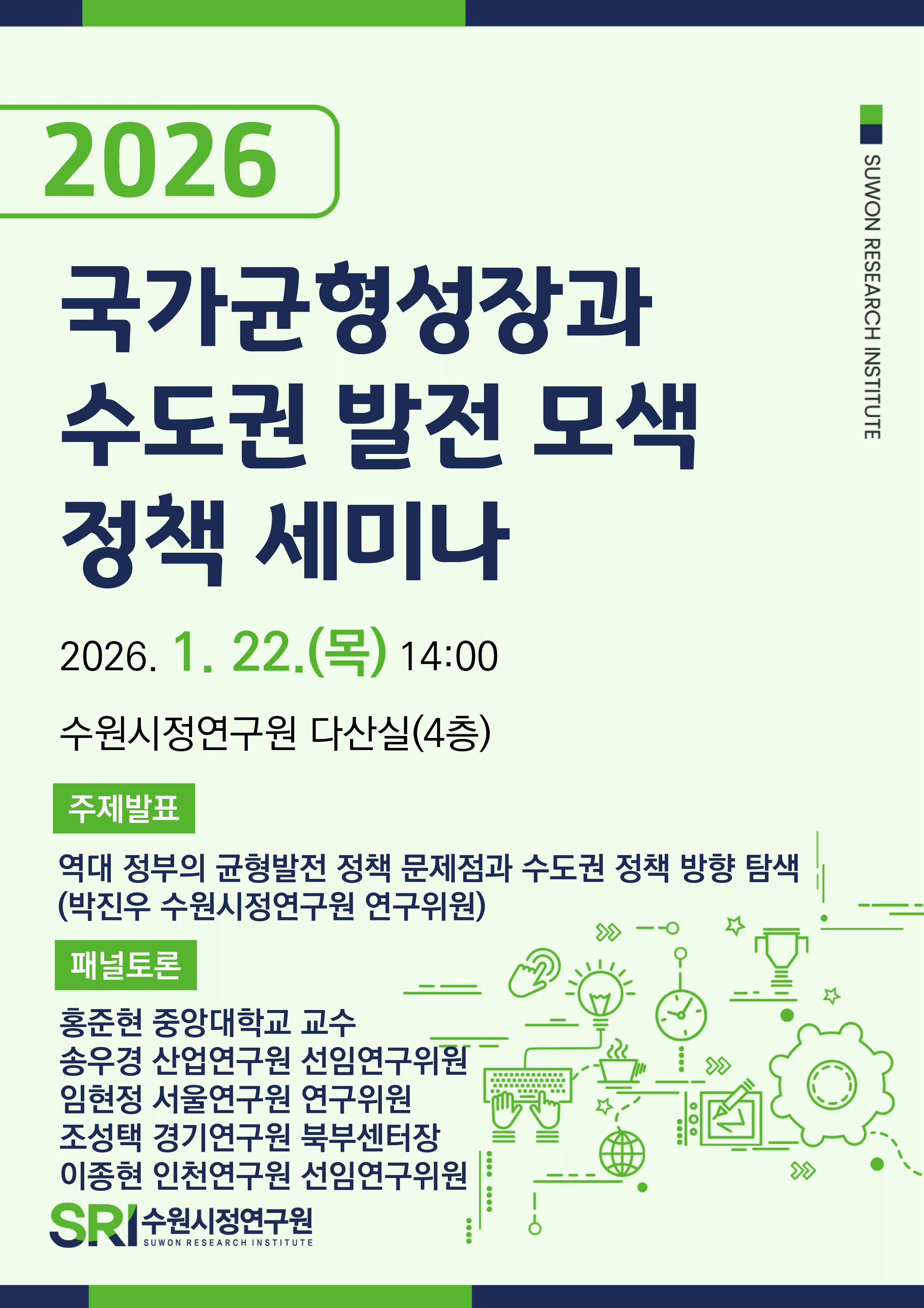 - (일시·장소) 2026년 1월 22일(목) 오후 14시-16시 / 수원시정연구원 다산실